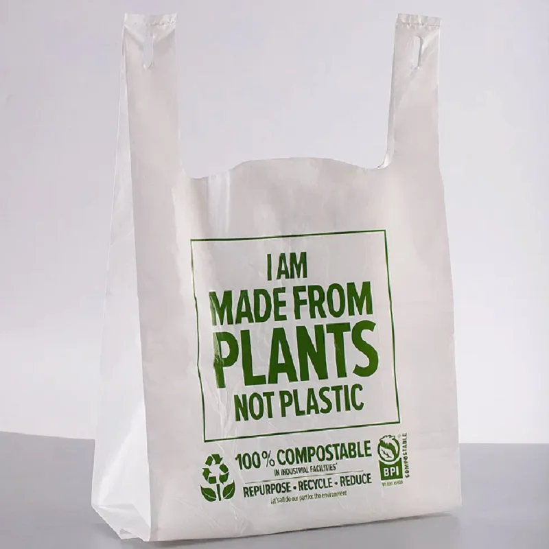 Fully Biodegradable T-shirt Thank you Bag Compostable Shopping Bag